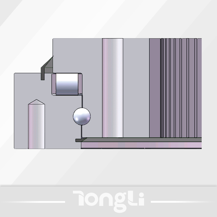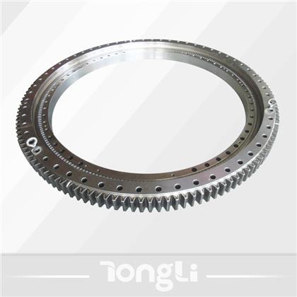 球柱联合式回转支承有两排滚道组成,一排为滚柱,承受轴向力,一排为钢球,承受轴向力、径向力和倾覆力矩。主要承承受大轴向力、小径向力和倾覆力矩的工况。